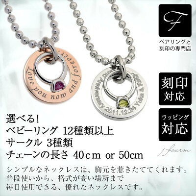 ベビーリング 刻印 ネックレス ステンレス 可能 誕生石 サークル小 ピンク イエロー シルバー グレー 40cm 50cm 出産祝い 名入れ プレセント 男の子 女の子 名前入り1歳 赤ちゃん レディース 送料無料 親子 兄弟 姉妹 子供指輪 キッズ クリfourm クリスマス 母の日メ